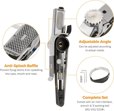 This Mini Air Belt Sander suitable for spot welding parts grinding, burr removal, chamfering and coating film removal operations, etc. The machine can be adjusted to the required angle for rotating and grinding according to actual needs. Used for grinding, polishing, concave surface treatment, napping, rust removal of non-metal, wood, leather, fabric, glass, lacquer, rubber, etc. Also, this power belt sander suitable for surface grinding of various manufactured products made of metal, non-ferrous metal, and non-metal. The ergonomic handle is comfortable to grip. The low vibration rate reduces the damage to your hands. Low energy consumption indirectly improves efficiency. Alloy body, polished surface. No need to assemble. Allows to quickly replace the sanding belt.